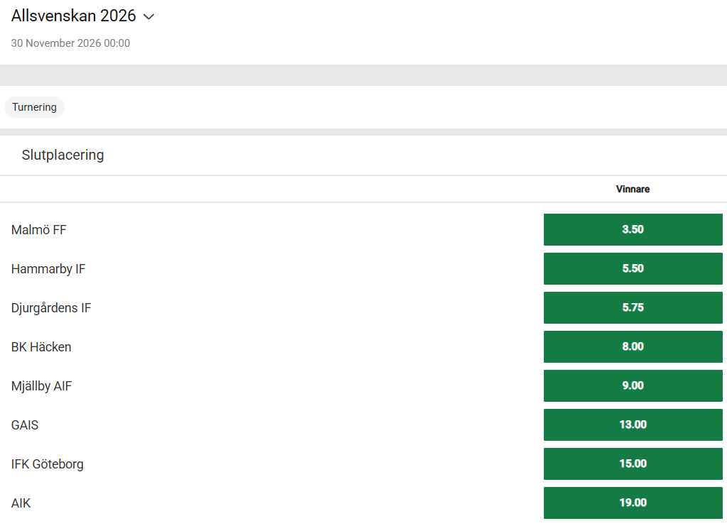 Här hittar ni flera grundläggande tips på Allsvenskan 2026 för att kunna vinna pengar under hela säsongen. Hitta årets vinnare tidigt och det kommer vara där man hittar de bästa spelen. Vi har även alla vinnarodds.